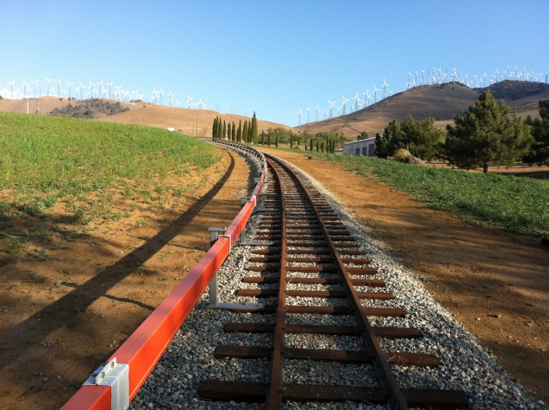 “ARES is a rail-based technology that stores energy by raising the elevation of mass against the force of gravity and recovering the stored energy as the mass is returned to its original location. Specifically, ARES energy storage technology employs a fleet of electric traction drive shuttle-trains, operating on a closed low-friction automated steel rail network to transport a field of heavy masses between two storage yards at different elevations.”