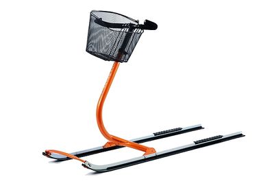 kicksled“Kick sleds are the Scandinavian answer to winter bicycling. Kick sleds look like Zimmer frames on runners, or like a dog-less dog sled. Like bicycles, they increase the rider’s speed and freighting capacity while demanding very little extra physical input. Unlike bicycles they have no moving parts and are very easy to maintain”.