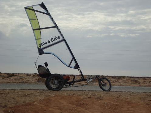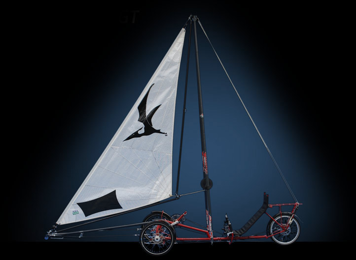 Pterosail Trike Systems is sailing and cycling over 3,000 miles from coast to coast across the USA this summer. The Pterosail is a street-legal recumbent tricycle with sails. It can reach up to 40 mph in good winds. No wind? Pedal. See also, below: the Whike, a Dutch made sail assisted trike.