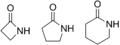 Here are some simple cyclic amides. Cyclic amides are called lactams.