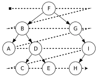 In-order: Lines are drawn downwards and returns data in the order: A, B, C, D, E, F, G, H, I