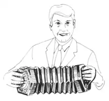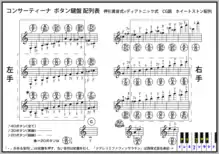 In this article, the right hand refers to the treble notes, left hand refers to the bass notes. In practise, left handed people sometimes invert the concertina and play treble with dominant left hand. This method works better for concertina than accordion (Bass button rows slant the wrong way on accordion)