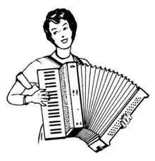 When playing the accordion, the shoulder straps should be fairly tight so that the instrument doesn't shift around as you reach for notes. Don't slouch - it looks ugly and causes you to lose control. Your left arm should be between the bellow-strap and the board; tighten that strap (usually via a notch on top of the bellows mechanism, very rarely Velcro might be used) so that it won't cut off your arm circulation, but not so loose that your hand slips as you change directions with the bellows.