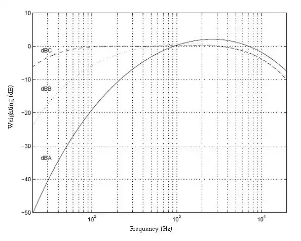 The measurement of noise perception with the sone or phon scale is not easy. A widely used measurement method is a weighting of the sound pressure level, according to frequency repartition. For each frequency of the density spectrum, a level correction is made. Different kinds of weightings (dB A, dB B, dB C) exist in order to approximate the human ear at different sound intensities, but the most commonly used is the dB A filter. Its curve is made to match the ear equal loudness curve for 40 phons, and as a consequence it’s a good approximation of the phon scale.
