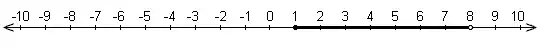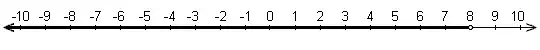 This is equivalent to the interval . In another example, a set of numbers less than 8, , is shown on a number line below: