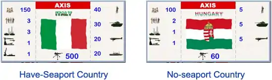 Not all countries had good seaports in World War 2. Countries had no seaports or weak seaports, in this game, is set as Non-Seaport countries.