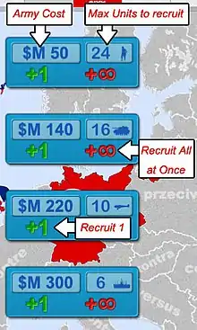 After owning the territory, player can build defend army. See Defend Countries/Territories
