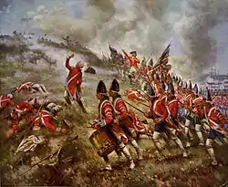 The first assaults on the fence line and the redoubt were met with massed fire at close range and repulsed, with heavy British losses. The reserve, gathering just north of the town, was also taking casualties from rifle fire in the town. Howe's men reformed on the field and made a second unsuccessful attack at the wall.