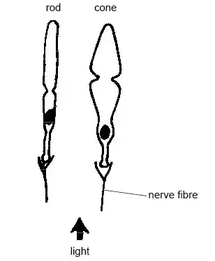 The rod cells are long and fat and are sensitive to dim light but cannot detect colour. They contain large amounts of a pigment that changes when exposed to light. This pigment comes from vitamin A found in carrots etc. A deficiency of this vitamin causes night blindness. So your mother was right when she told you to eat your carrots as they would help you see in the dark!