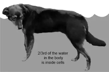 Animals lose water through their skin and lungs, in the faeces and urine. These losses must be made up by water in food and drink and from the water that is a by-product of chemical reactions. If the animal does not manage to compensate for water loss the dissolved substances in the blood may become so concentrated they become lethal. To prevent this happening various mechanisms come into play as soon as the concentration of the blood increases. A part of the brain called the hypothalamus is in charge of these homeostatic processes. The most important is the feeling of thirst that is triggered by an increase in blood concentration. This stimulates an animal to find water and drink it.