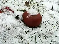 In the wild, apples grow quite readily from seeds. However, like most perennial fruits, apples are ordinarily propagated asexually by grafting. This is because seedling apples are an example of "Extreme heterozygotes", in that rather than inheriting DNA from their parents to create a new apple with those characteristics, they are instead different from their parents, sometimes radically.[1] Triploids have an additional reproductive barrier in that the 3 sets of chromosomes cannot be divided evenly during meiosis yielding unequal segregation of the chromosomes (aneuploids). Even in the very unusual case when a triploid plant can produce a seed (apples are an example), it happens infrequently, and seedlings rarely survive.[2] Most new apple cultivars originate as seedlings, which either arise by chance or are bred by deliberately crossing cultivars with promising characteristics. The words 'seedling', 'pippin', and 'kernel' in the name of an apple cultivar suggest that it originated as a seedling. Apples can also form bud sports (mutations on a single branch). Some bud sports turn out to be improved strains of the parent cultivar. Some differ sufficiently from the parent tree to be considered new cultivars.[3]