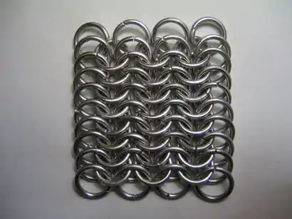 The most common pattern is the four in one. This means that each link has four others going through it. There is also six in one, where each link has six links going through it, and eight in one, with eight links going through one. There is also the double mail, which is a doubled four in one, or eight in two (also known as king's mail). This has every link in the four in one pattern doubled. Beware though; the double mail is twice as heavy as the four in one.