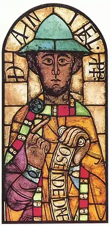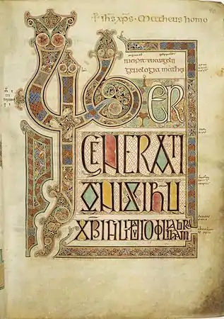 Inscription of the book of Lindisfarne, an example of Anglo-Saxon art.