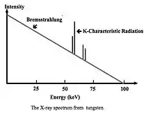 Finally, note that the bulk of the radiation in the X-ray spectrum for a tungsten anode is seen in Figure 1.10 to result from Bremsstrahlung.