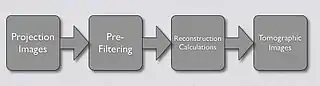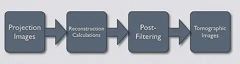 - The resultant data can be processed using Filtered Back Projection and Iterative Reconstruction;