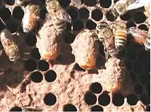 As young queens begin to emerge from their cell, they often begin to emit a high-pitched perching sound called a pipe. This signal is thought to be a notification of hatching to challenge other emerging or existing queens. Emerged un-mated queens in most cases will quickly find and kill their developing queen sisters.