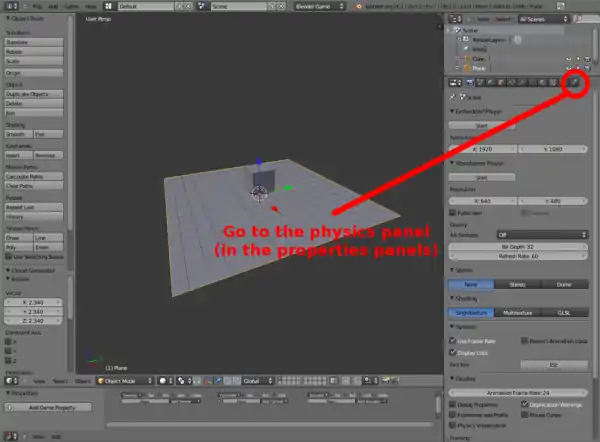 BLENDER NOTE: For Everyone Before you continue please look at the top of the Blender window where there is the pull-down menu titled Blender Render. Click it and select Blender Game. This means that Blender will pick the BGE as the render engine. |