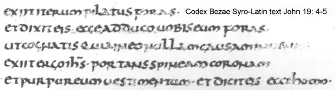 Line 5 − and the purple robe. And [Pilatus] said to them: Behold the man.