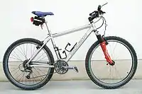 Mountain bikes are usually the bigger bikes with wider but smaller diameter wheels. As other bikes they come in many varieties. Cross-country mountain bikes are the lightest weight modern mountain bikes, with only front shocks or with low travel full suspension; the intended use being riding long distances over unpaved paths through medium terrain, like hiking on a bicycle. For more aggressive mountain bikers, all-mountain, freeride, or downhill mountain bikes exist. They are for going down steep slopes at high speeds, over big drops. They are extremely strong, but heavy, and not designed to be pedaled for much distance. In many places they are taken up ski lifts in the summer, or driven up in a automobile, and only ridden down hill.