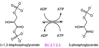 Step 7: Production of 3-phosphoglycerate via substrate-level phosphorylation catalysed by phosphoglycerate kinase:
