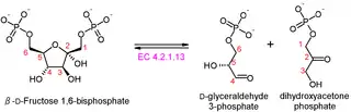 Step 4: Cleavage to two triose phosphates catalysed by aldolase: