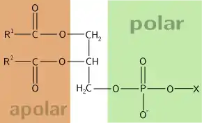 If we compare the structures of phosphoglycerides and sphingolipids, we see that they are very similar compounds. Each lipid has two long hydrophobic hydrocarbon "tails" and a single polar "head". Since the molecule has both polar and nonpolar moieties, it is said to be amphipathic. It is the amphipathic nature of these molecules that causes them to form bilayers, mediated by four forces: