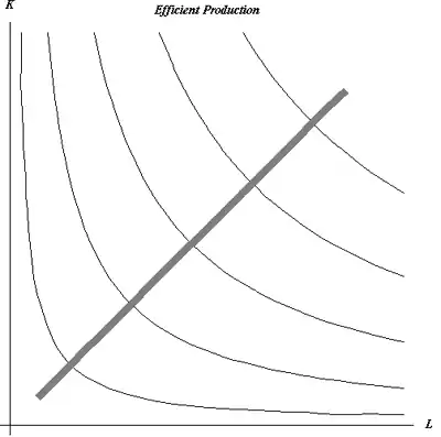 Figure 3.2 Efficient production. The thick line connects the infinite number of points consistent with equation (3.4), when varying the cost constraint C0 |