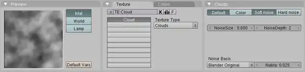 - Use an adjusted Clouds texture with a NoiseSize of 0.6.