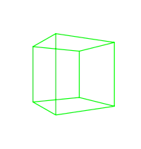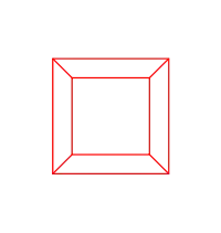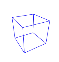 The image on the right is a 2D image of a cubic lattice or framework. Like any cube, it has six square faces and twelve straight edges. In the 3D world, four of the edges are parallel to our line-of-sight. They connect the four corners of the nearest square to the corresponding corners of the farthest one. Each of these edges is parallel to the other three.