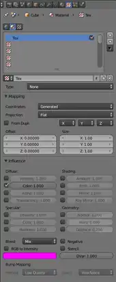 The “Offset:” and “Size:” X, Y and Z values allow simple adjustments of the position and scaling of the texture. Note that the size values work the opposite way to what you might expect: larger values here make the texture smaller along the corresponding dimension.