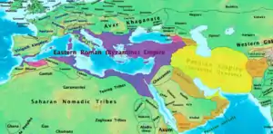 Many territories were later lost to the Islamic Caliphates during the early Muslim conquests (622–750). The Byzantine Empire had been weakened by the ongoing Byzantine–Sasanian wars (285 to c. 628), against the Persian Sasanian Empire; this included the 626 siege of Constantinople. After the fall of Sasanians, at the first and second Arab sieges of Constantinople (674–678 and 717–718) the Umayyad Caliphate was defeated by the Byzantine Empire.