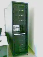 We want to put all the hardware somewhere, where it is save and where it has good conditions of cooling and safety: a rack (see picture). The rack on the picture can take up 42 units of 19 and cost us 500 euros.