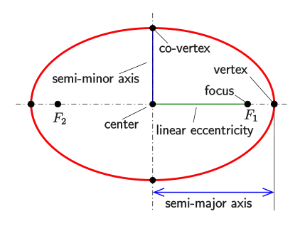 • Vertex (plural: vertices): the endpoint of the semi-major axis. It has coordinates .