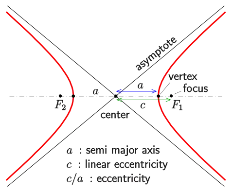 • Asymptote: the line where the hyperbola is approaching but never intersects.