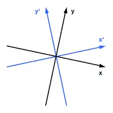 An xy-Cartesian coordinate system rotated through an angle to an x'y'-Cartesian coordinate system