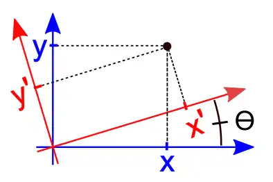In order to do so, we need to find out the relationship between the pre-rotation axes and the post-rotation axes. In other words, suppose there is a point with coordinates . After the rotation, the coordinates are . Express in terms of .