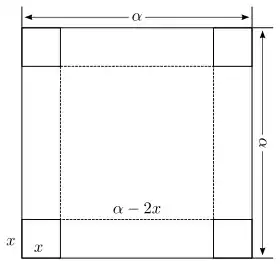 It is desired to make an open-top box of greatest possible volume from a square piece of tin whose side is by cutting equal squares out of the corners and then folding up the tin to form the sides. What should be the length of the side of a cut-out square?