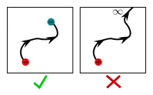 The total endpoints of are: . In essence, the endpoints of are the endpoints of that are contained in , plus the points at which paths from enter or exit volumes from . This is depicted in the images on the right.