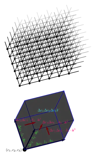 Spreading the weight assigned to the current lattice point over the volume of the current cell gives: .