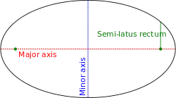 where is the eccentricity and is the semi-latus rectum (the perpendicular distance at a focus from the major axis to the curve).