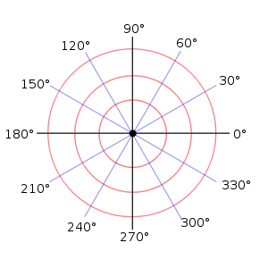 The polar coordinate system is a two-dimensional coordinate system in which each point on a plane is determined by an angle and a distance. The polar coordinate system is especially useful in situations where the relationship between two points is most easily expressed in terms of angles and distance; in the more familiar Cartesian coordinate system or rectangular coordinate system, such a relationship can only be found through trigonometric formulae.