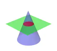 Luckily in this case it is possible to use some of what we know from geometry. We can imagine cutting the cone perpendicular to the base through some diameter of the circle all the way to the tip of the cone. If we then look at the flat side we just created, we will see simply a triangle, whose geometry we understand well. The right triangle from the tip to the base at height is similar to the right triangle from the tip to the base at height . This tells us that . So that we see that the radius of the circle at height is . Now using the familiar formula for the area of a circle we see that .
