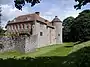 Remodelled 19th century, single tower and stretch of wall survive from fortifications of c.1400. | |