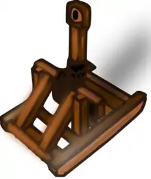 The mangonel was similar in design to a large catapult and used the torsion in a twisted rope to power the arm. Its main use was to attack the castle walls rather than the defenders as it hurled stones or other ammunition at high speed but at too shallow an angle to reach the top of the wall. The mangonel had a bucket at one end that could be filled with different materials depending on the situation. For example, burning barrels of pitch could have been thrown to set fire to the bottom of the walls with the intention of weakening the cement, making the wall easier to collapse. The mangonel was fairly inaccurate making it best suited to attacks on stretches of wall rather than pinpoint attacks.