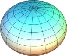 In Celestia 1.5.0, the size of the ellipsoid is controlled by the Radius property. The shape of the ellipsoid is given by the value of the oblateness property. Oblateness is the amount of flattening or stretching along the polar axis. The default value of oblateness is 0.0, indicating that the ellipsoid is a sphere. If the oblateness greater than zero, the planet will be appear squashed. This squashed sphere shape is called an oblate spheroid. Giant planets can be very noticeably non-spherical: fast rotation distorts them, causing a noticeable bulge at the equator. Even solid bodies such as Earth can be flattened to some extent, though less than giant planets.