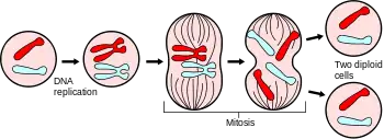 In biology, Mitosis is the process of chromosome segregation and nuclear division that follows replication of the genetic material in eukaryotic cells. This process assures that each daughter nucleus receives a complete copy of the organism's genetic material. In most eukaryotes, mitosis is accompanied with cell division or cytokinesis, but there are many exceptions, for instance among fungi. There is another process called meiosis, in which the daughter nuclei receive half the chromosomes of the parent, which is involved in gamete formation and other similar processes, which makes the parent cell still active.