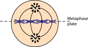 When chromosomes are bivalently attached - when both kinetochores are attached to microtubules emanating from each centriole - they line up in the middle of the spindle, forming what is called the metaphase plate. This does not occur in every organism - in some cases chromosomes move back and forth between the centrioles randomly, only roughly lining up along the midline.