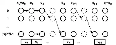 o=(C[x-k0-1]*|S|^(k-1)+o)/|S| # backtracking to the previous overlap