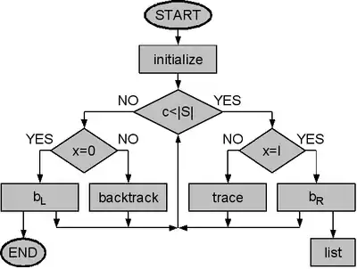 The trace and backtrack algorithm (simplified flowchart)