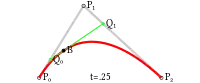 Animation of a sampling point on a quadratic Bézier curve with control points P0, P1, and P2.
